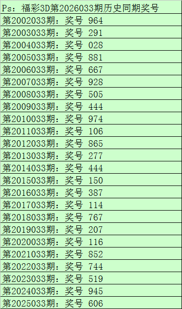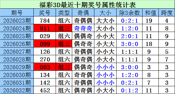 财迷福彩3D第2026033期概述推选: